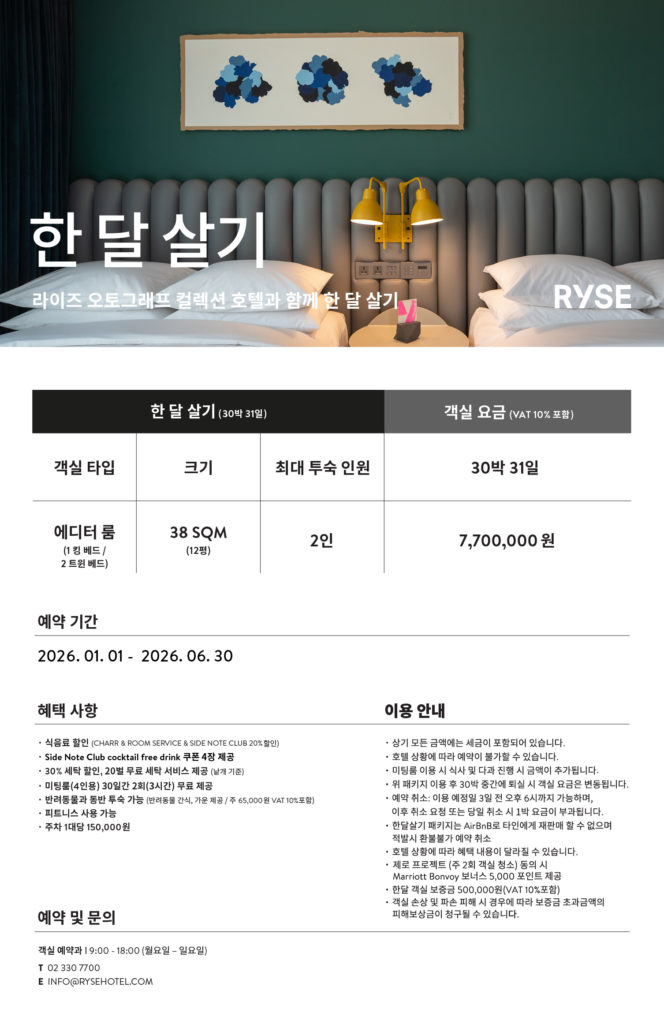 라이즈 한 달 살기는 일상의 퀄리티를 높여주고 특별함을 더해 주는 장기 투숙 패키지입니다.