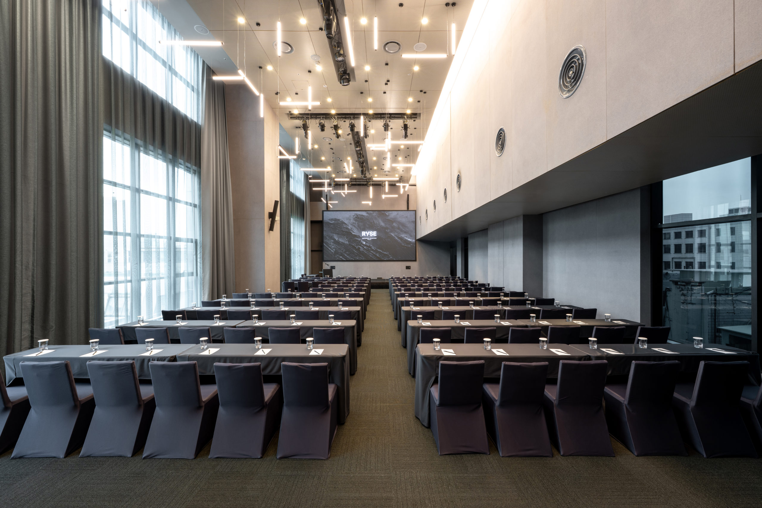 현대적으로 설계된 RYSE SPACE는 최대 200명까지 수용 가능한 다목적 이벤트 공간입니다.